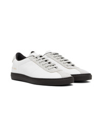 Low-top grained leather and suede sneakers in white. · Lace-up closure · Scalloped detailing at vamp · Padded tongue and collar · Signature series stamp at outer side · Mesh lining · Textured rubber midsole · Treaded rubber sole Supplier color: White Upper: leather. Sole: rubber. Made in Italy 242426F128005