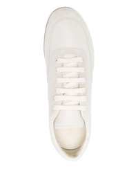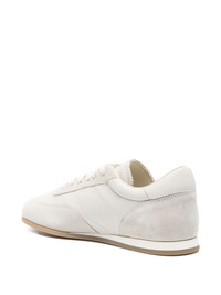 suede panelled sneakers Highlights - Off-white - Leather upper - Suede heel panel - Lace-up fastening - Flat sole - Round toe Made in Italy Composition Outer: Leather 100% Sole: Rubber 100% Lining: Fabric 100%