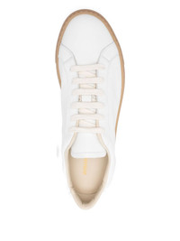 leather-sole sneakers Highlights - White - Leather - Round toe - Lace-up fastening - Flat sole - Low-top design Imported Composition Outer: Calf Leather 100% Lining: Calf Leather 100% Sole: Rubber 100%