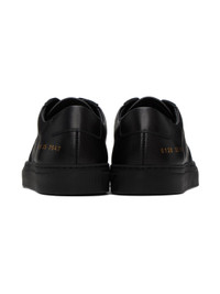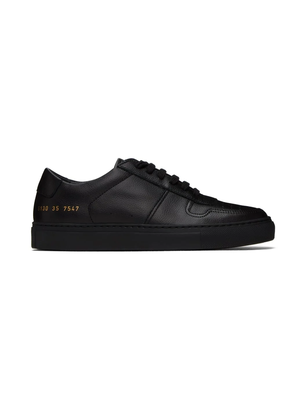 Low-top grained leather sneakers in black. Signature series stamp in gold-tone at outer side. · Perforated detailing at round toe and outer side · Lace-up closure · Padded collar · Buffed leather lining · Textured rubber midsole · Treaded rubber outsole Supplier color: Black Upper: leather. Sole: rubber. Made in Italy 232426F128030