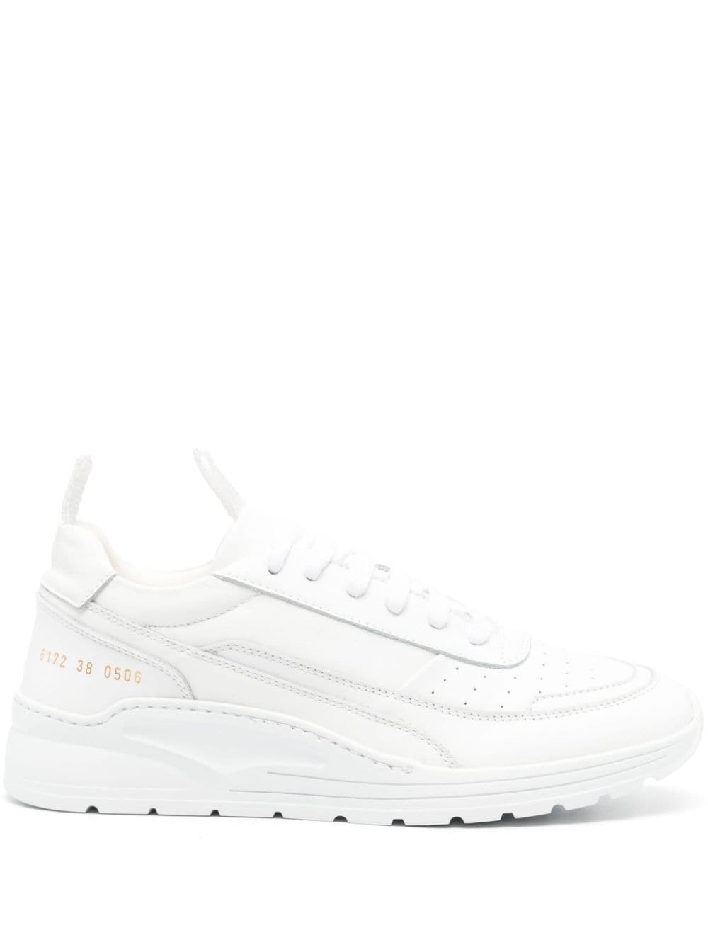 Track 90 sneakers Highlights - White - Calf leather - Smooth grain - Brushed finish - Front lace-up fastening - Double pull-tab at the opening - Logo print to the side - Perforated toebox - Round toe - Branded insole - Chunky rubber sole Made in Italy Composition Sole: Rubber 100% Lining: Fabric 100% Outer: Calf Leather 100% SIZE & FIT Measurement HEEL 1.37 in(3.5 cm) Sole height 0.78 in(2 cm)