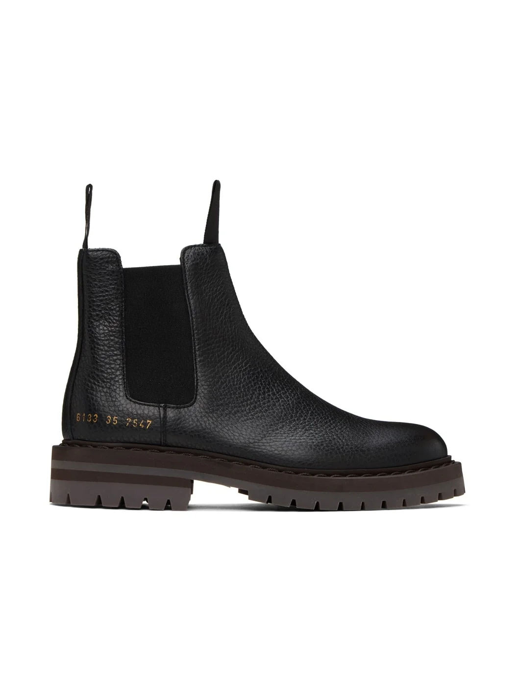 Ankle-high grained leather Chelsea boots in black. Signature series stamp in gold-tone at outer side. · Grosgrain pull-loops at collar · Elasticized gusset at sides · Buffed leather lining in tan · Stacked foam rubber midsole · Treaded rubber sole · Heel: H1.5 in Supplier color: Black Upper: leather. Sole: rubber. Made in Italy 232426F113003