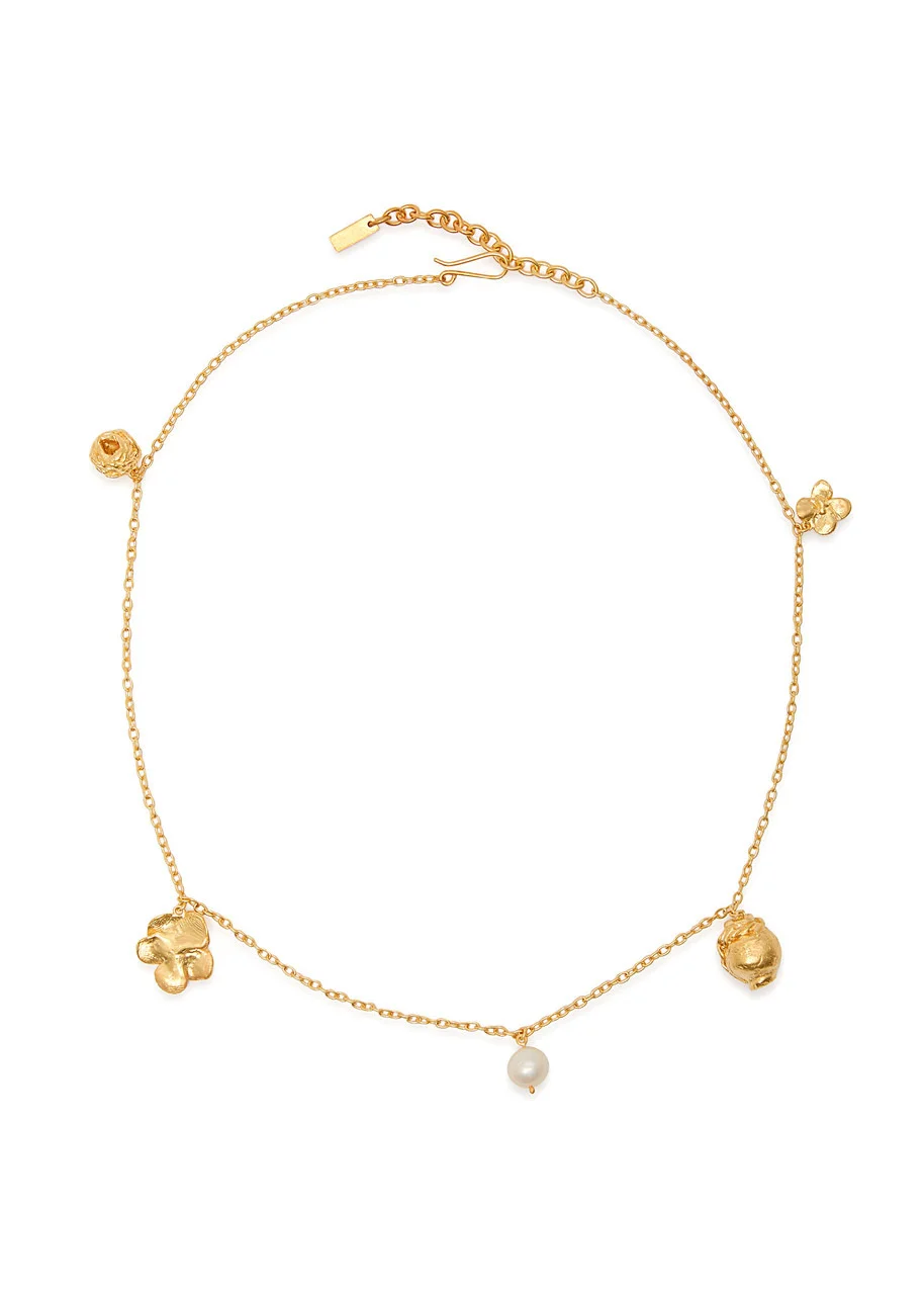 Info & Care Hand-finished Completedworks 18kt gold-plated necklace Freshwater pearl pendant, textured and floral charms, designer-engraved tag Adjustable hook fastening Presented in a designer-stamped box Size & Fit Length: 45cm-50cm