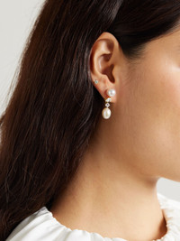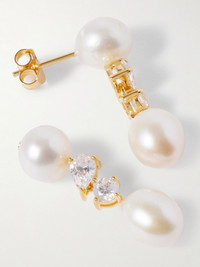 Completedworks' earrings are tipped with freshwater pearls at either end. They're handmade from gold-plated silver and set with a single pear-cut cubic zirconia alongside a round-cut one. Details & Care - Butterfly fastening for pierced ears - Freshwater pearls: China
