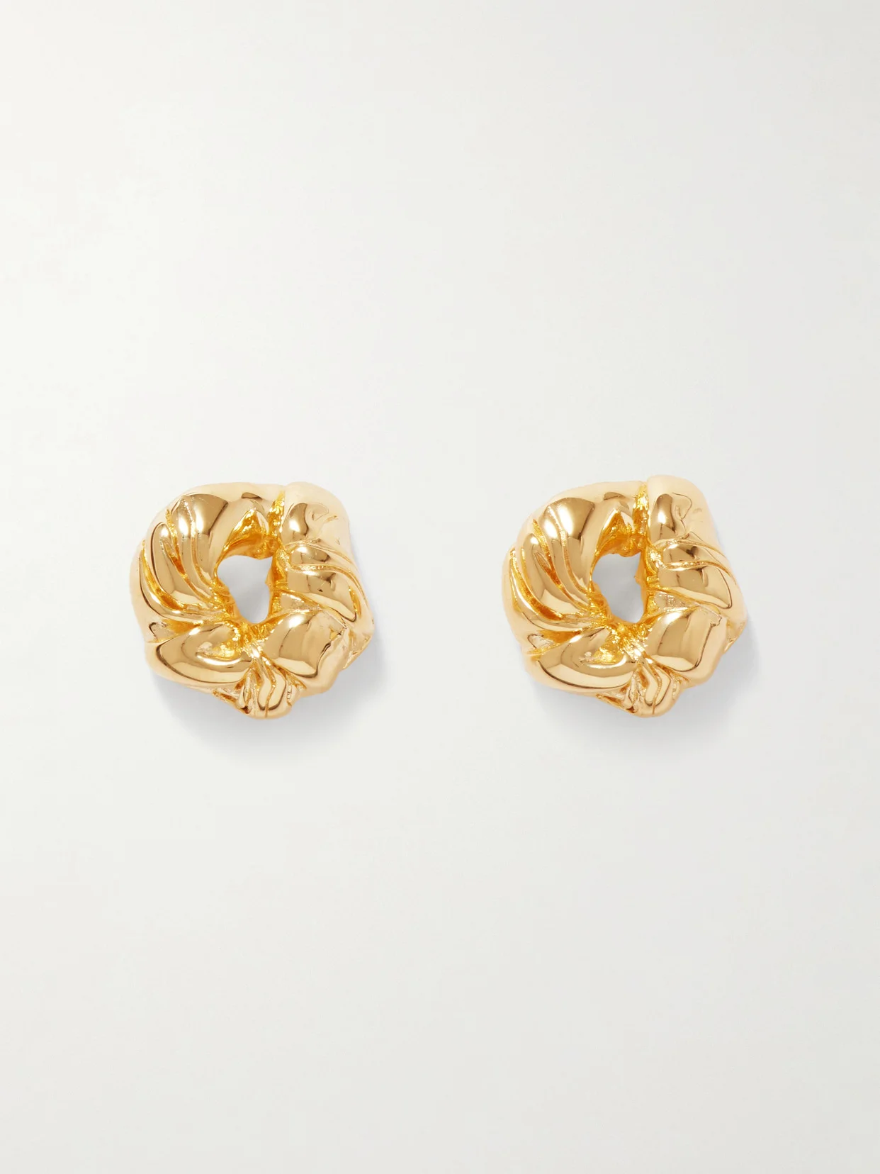 Completedworks looks to the art of sculpture for inspiration to make its designs "permanently relevant in a changing world". They're made from shining recycled gold vermeil in a rippled form that folds like molten metal.