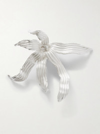 Completedworks' jewelry has been worn by the likes of Emma Watson, Jodie Comer and Adwoa Aboah. Capturing its sculptural aesthetic, this brooch is handcrafted from silver-plated metal and cast to resemble a flower.
