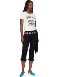 Stretch bamboo- and cotton-blend jersey trousers. · Shirring throughout · Detachable self-tie belt with mother-of-pearl hardware · Lettuce edge at elasticized waistband · Cropped legs · Ruffled edge at cuffs Supplier color: Black 68% bamboo, 28% cotton, 4% elastane. Made in United Kingdom 261954F087000