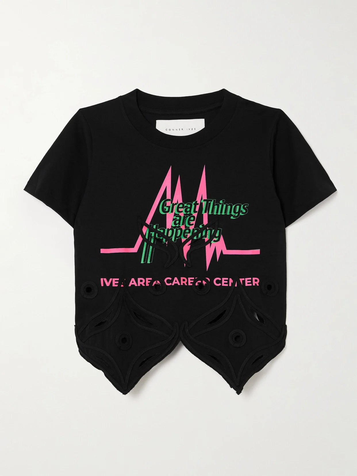 Conner Ives ‘Schiffili' turtleneck top gives all the sartorial flair of two styles worn together with minimal fuss. It's cut from contrasting layers of smooth satin-jersey and cotton mapped with intricate cutouts and embroidery. On days when you're feeling creative, you can also wear them separately.