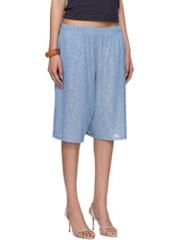 Cotton- and silk-blend mesh shorts. Floral pattern embroidered throughout. · Elasticized waistband · Two-pocket styling Part of the exclusive SSENSE HEAT capsule. Supplier color: Light blue 52% cotton, 48% silk. Made in United Kingdom 252954F088004