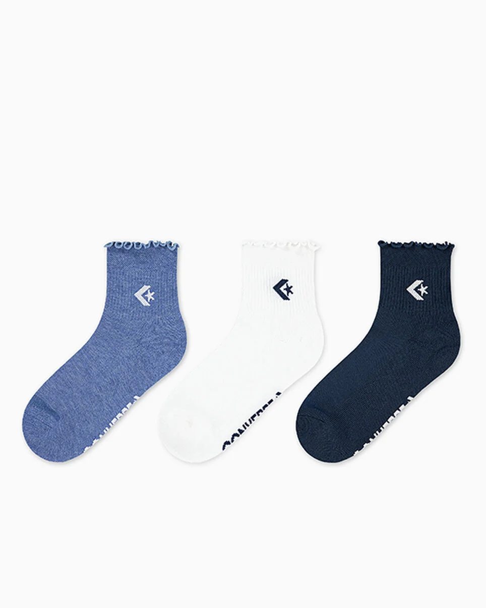 Our classic quarter socks with a delicate touch. ALL IN THE DETAILS Low tops, high tops, boots—whatever you wear, complete the look with these lettuce-trimmed quarter socks. WHY YOU SHOULD BE DOWN - Poly knit fabric is soft with added stretch - Quarter length with lettuce-trimmed ribbed cuffs - Mesh toe ventilation provides cooling breathability - Cushioning on the bottom, heel, and toe adds soft comfort - SKU: WC0555-001