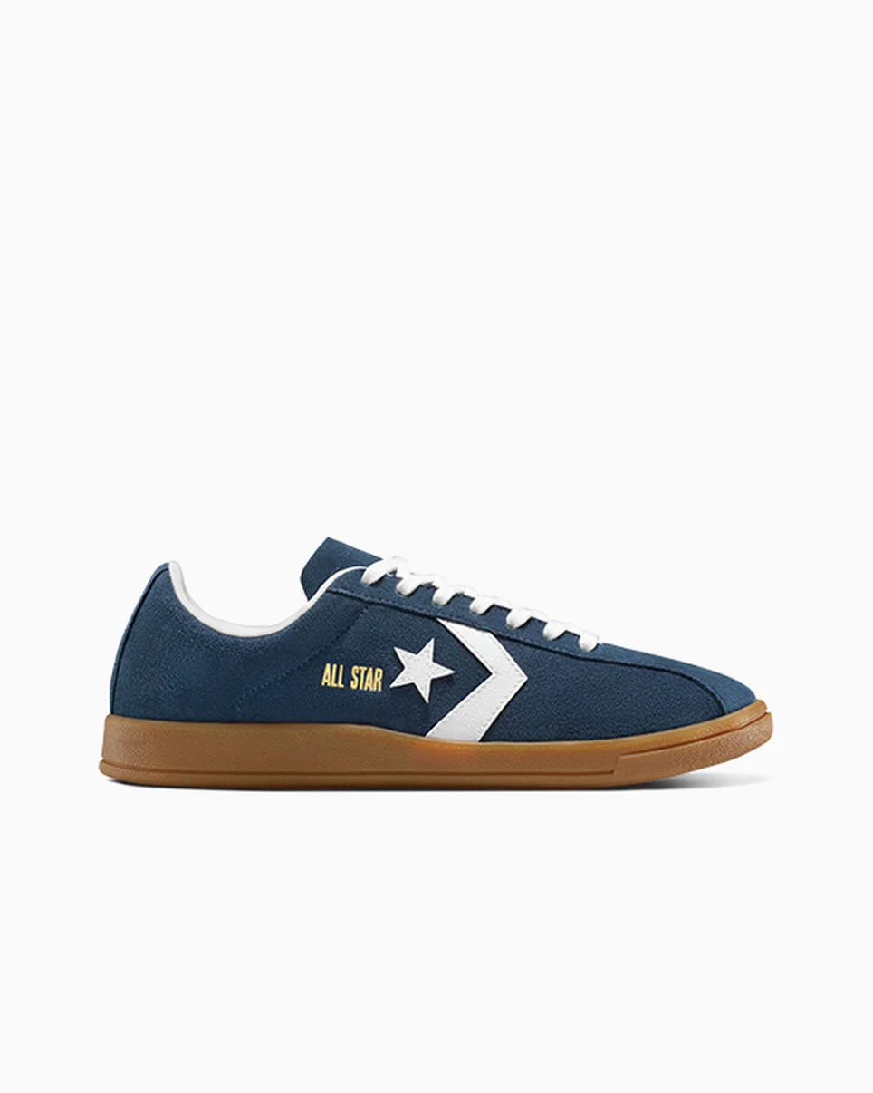 Out of the vault; into your closet. These retro trainers are ready to step back into the limelight. FLAT-OUT CLASSIC In a street-ready comeback, these slimmed-down trainers channel '70s soccer style, for a look that'll thrive just as much on the street as they did in the stadium. WHY YOU SHOULD BE DOWN - Suede upper with that signature Converse look and feel - OrthoLite cushioning and an EVA midsole help provide optimal comfort - Slim design kicks it back to a retro, '70s soccer look - Gold All Star branding and the iconic Star Chevron rep the legacy - SKU: A15622C