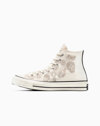 Celebrate Day of the Dead with vibrant details inspired by the annual tradition. FELIZ DIA DE LOS MUERTOS Just in time for Mexico's Day of the Dead celebration, the Chuck 70 gets in the spirit. Details nod to the design motifs that decorate the ofrenda and welcome back the souls of loved ones returning from the afterlife. WHY YOU SHOULD BE DOWN - Heavyweight, durable canvas upper for that structured Chuck 70 look and feel - OrthoLite cushioning helps provide optimal comfort - Details throughout inspired by the rich, multi-layered design motifs of the traditional ofrenda, or altar, created to honor the ancestors - Tonal graphics on the upper and color-pop graphics on the outsole - Candle graphics on the signature All Star patch and license plate - SKU: A17961C