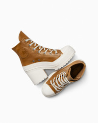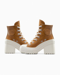The Chuck 70 De Luxe Heel gets a refresh in ultra-premium leather. EFFORTLESS LUXURY This Chuck 70 De Luxe combines smooth, premium leather and saturated colors for easy pairing with your whole wardrobe. WHY YOU SHOULD BE DOWN - Ultra-premium leather upper gives you a luxury take on that vintage Chuck 70 look - OrthoLite cushioning helps provide optimal comfort - Lugged sole helps provide grip - A chunky platform heel amps ups the height and style - Iconic Chuck Taylor patch reps the Converse legacy - SKU: A12866C