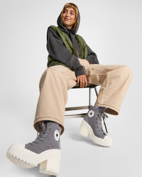 Lifted, lugged Chucks that match anything and everything. LEVEL UP The iconic design you know and love gets a stylish update with a chunky lugged heel to boost all your favorite looks. Dress it up, dress it down—however you style it, prepare to turn heads. WHY YOU SHOULD BE DOWN - High-top heeled-shoe with suede upper - OrthoLite cushioning helps provide optimal comfort - New neutral colors refresh your rotation - A lugged, platform heel ups the height - Iconic Chuck Taylor ankle patch and vintage All Star license plate - SKU: A12327C