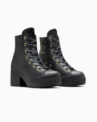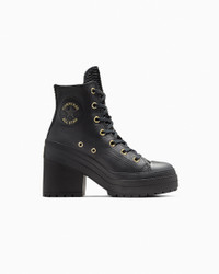 The coveted Chuck 70 De Luxe Heel platform returns with crocodile-embossed leather. THE HEIGHT OF FASHION The iconic design you know and love gets a stylish update with a chunky lugged heel to boost all your favorite looks. This edition plays up your style with a monochrome design and luxe details. WHY YOU SHOULD BE DOWN - Durable upper with croc-embossed leather tongue and heel stripe - OrthoLite cushioning helps provide optimal comfort - Subtle gold hits bring a luxe look - A lugged, platform heel ups the height - Iconic Chuck Taylor ankle patch and vintage All Star license plate - SKU: A12346C