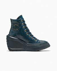 Unexpected and unforgettable—the Chuck 70 De Luxe Wedge returns in bold, croc-embossed leather. THE HEIGHT OF FASHION Turn every hallway into your own personal runway with these wedge platform Chucks. Bold lines and crocodile-inspired details bring a luxe look with just enough edge. WHY YOU SHOULD BE DOWN - Croc-embossed leather brings a luxe look and feel - OrthoLite cushioning helps provide optimal comfort - Tonal laces and gold eyelets elevate your style - A chunky, lugged platform wedge adds height - Iconic Chuck Taylor ankle patch - SKU: A10037C