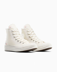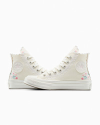 Get decked out in something delicate. REGENCY ERA Romance and whimsy come naturally to these dainty high tops. Scalloped trimming and embroidered florals will leave you smitten with every step. WHY YOU SHOULD BE DOWN - Canvas upper with that premium Chuck 70 look and feel - OrthoLite cushioning helps provide optimal comfort - Scalloped trimming and embroidered florals bring a dainty flair to your look - Iconic Chuck Taylor ankle patch and All Star license plate - SKU: A13541C