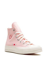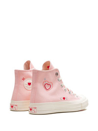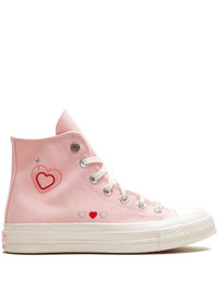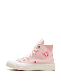 Chuck 70 Hi "Y2K Heart" sneakers These Converse Chucks have a pink design decorated with tiny hearts and metallic details that read like a love letter to Y2K. They have a durable canvas upper and sit atop a rubber sole with OrthoLite cushioning for comfort. Highlights - Pink - Canvas - Appliquã© logo - Heart print - Round toe - Front lace-up fastening - Branded insole - Rubber sole - Ortholite cushioning - These styles are supplied by a premium and authenticated sneaker marketplace. stocking only the most sought-after footwear, they source and curate some of the most hard to find sneakers from around the world. Imported Composition Sole: Rubber 100% Lining: Fabric 100% Outer: Canvas 100%