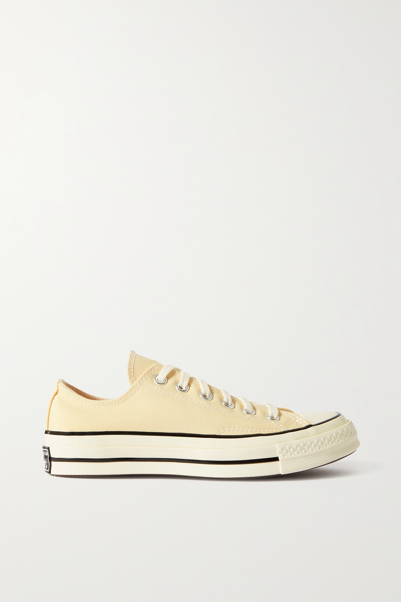 - Rubber sole measures approximately 25mm/ 1 inch - Ecru canvas - Lace-up front - Designer color: Banana Cake/ Egret - Converse follows its own size guide, therefore the size stated on the box will differ from the one provided in our size chart. To receive your correct fit, please refer to Size & Fit notes