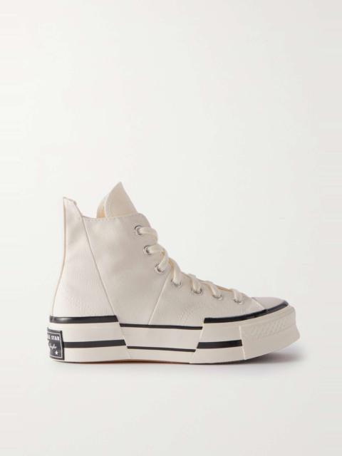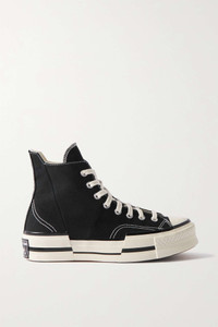 EDITORS'NOTES Converse's 'Chuck 70 Plus' are a modern take on the label's much-loved sneakers, updated with distorted details. They're made from black canvas with contrast topstitching and feature a spliced rubber sole and logo. Wear yours with everything, from denim to midi dresses. SIZE & FIT - UK 3 = Women’s US 5/ Men’s US 3/ EU 35 - UK 3.5 = Women’s US 5.5/ Men’s US 3.5/ EU 36 - UK 4 = Women’s US 6/ Men’s US 4/ EU 36.5 - UK 4.5 = Women’s US 6.5/ Men’s US 4.5/ EU 37 - UK 5 = Women’s US 7/ Men’s US 5/ EU 37.5 - UK 5.5 = Women’s US 7.5/ Men’s US 5.5/ EU 38 - UK 6 = Women’s US 8/ Men’s US 6/ EU 39 - UK 6.5 = Women’s US 8.5/ Men’s US 6.5/ EU 39.5 - UK 7 = Women’s US 9/ Men’s US 7/ EU 40 - UK 7.5 = Women’s US 9.5/ Men’s US 7.5/ EU 41 - UK 8 = Women’s US 10/ Men’s US 8/ EU 41.5 - UK 8.5 = Women’s US 10.5/ Men’s US 8.5/ EU 42 - UK 9 = Women’s US 11/ Men’s US 9/ EU 42.5 - UK 9.5 = Women’s US 11.5/ Men’s US 9.5/ EU 43 - UK 10 = Women’s US 12/ Men’s US 10/ EU 44 - UK 10.5 = Women’s US 12.5/ Men’s US 10.5/ EU 44.5 - UK 11 = Women’s US 13/ Men’s US 11/ EU 45 - UK 11.5 = Women’s US 13.5/ Men’s US 11.5/ EU 46 - UK 12 = Women’s US 14/ Men’s US 12/ EU 46.5 - Fits true to size, take your normal size DETAILS & CARE - Rubber sole measures approximately 50mm/ 2 inches - Black canvas - Lace-up front - Converse follows its own size guide, therefore the size stated on the box will differ from the one provided in our size chart. To receive your correct fit, please refer to Size & Fit notes