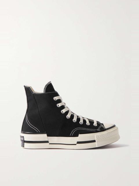 EDITORS'NOTES Converse's signature canvas sneakers need no introduction - the brand's high-tops have endured for decades as one of the world's most-wanted shoes. What sets this 'Chuck 70 Plus' style apart is its chunky platform sole, an oversized riff on the classic design. Wear yours with everything from jeans to midi dresses. SIZE & FIT Converse follows its own size guide, please refer to below: - UK 3 = Women’s US 5/ Men’s US 3/ EU 35 - UK 3.5 = Women’s US 5.5/ Men’s US 3.5/ EU 36 - UK 4 = Women’s US 6/ Men’s US 4/ EU 36.5 - UK 4.5 = Women’s US 6.5/ Men’s US 4.5/ EU 37 - UK 5 = Women’s US 7/ Men’s US 5/ EU 37.5 - UK 5.5 = Women’s US 7.5/ Men’s US 5.5/ EU 38 - UK 6 = Women’s US 8/ Men’s US 6/ EU 39 - UK 6.5 = Women’s US 8.5/ Men’s US 6.5/ EU 39.5 - UK 7 = Women’s US 9/ Men’s US 7/ EU 40 - UK 7.5 = Women’s US 9.5/ Men’s US 7.5/ EU 41 - UK 8 = Women’s US 10/ Men’s US 8/ EU 41.5 - UK 8.5 = Women’s US 10.5/ Men’s US 8.5/ EU 42 - UK 9 = Women’s US 11/ Men’s US 9/ EU 42.5 - UK 9.5 = Women’s US 11.5/ Men’s US 9.5/ EU 43 - UK 10 = Women’s US 12/ Men’s US 10/ EU 44 - UK 10.5 = Women’s US 12.5/ Men’s US 10.5/ EU 44.5 - UK 11 = Women’s US 13/ Men’s US 11/ EU 45 - UK 11.5 = Women’s US 13.5/ Men’s US 11.5/ EU 46 - UK 12 = Women’s US 14/ Men’s US 12/ EU 46.5 - Fits true to size, take your normal size - Packaging reflects both men’s and women’s sizing DETAILS & CARE - Rubber sole measures approximately 50mm/ 2 inches - Off-white canvas - Lace-up front - Converse follows its own size guide, therefore the size stated on the box will differ from the one provided in our size chart. To receive your correct fit, please refer to Size & Fit notes