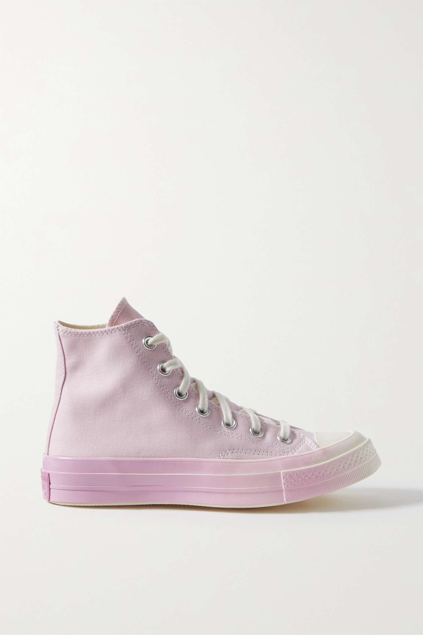 EDITORS'NOTES It's hard to have too many pairs of Converse sneakers - they're the kind of style that goes with everything from denim to midi dresses. This 'Chuck 70' version has slightly higher rubber foxing, thicker toe caps and is made from heavier-grade recycled canvas for improved durability. SIZE & FIT - DETAILS & CARE - Heel measures approximately 35mm/ 1.5 inches - Tonal-pink and white recycled canvas - Lace-up front - Designer color: Pink Foam/ Beyond Pink/ Egret - Converse follows its own size guide, therefore the size stated on the box will differ from the one provided in our size chart. To receive your correct fit, please refer to Size & Fit notes
