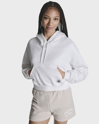 Just the right crop, with comfort that goes the distance. FRESH CROP Cropped to perfection, this pullover hoodie shows up without trying too hard. It delivers cozy comfort, a modern cut, and classic details like a kanga pocket and hood with adjustable drawcords. WHY YOU SHOULD BE DOWN - Cotton-blend fabric feels soft against the skin - A cropped, standard fit for a relaxed look and feel - Kanga pocket lets you warm your hands when there's a chill - Chuck Taylor patch delivers heritage style - 80% cotton, 20% polyester - SKU: CVW5K111-WHT