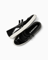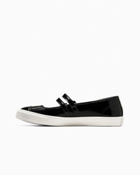 Rage against Valentine's Day in these low-profile Mary Janes. HEARTBREAKER Not feeling the love this year? Ward off Cupid and secret admirers with an edgy pair of Mary Janes that are blacker than your ex's heart. WHY YOU SHOULD BE DOWN - Shiny patent leather upper with that classic Mary Jane look - OrthoLite cushioning helps provide optimal comfort - Ultra-low profile and two buckled straps nod to timeless style - Heart-shaped buckles and printed outsoles add a touch of romance - Iconic All Star license plate - SKU: A13654C