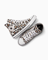 Two-tone leopard prints wild out on classic Chucks. SPOTTED IN THE STREETS Fierce meets fashion-forward in these bold, spotted high tops. A little glam and a lot of fun, everything's better in leopard print shoes. WHY YOU SHOULD BE DOWN - Durable canvas upper for that classic Chucks look and feel - OrthoLite cushioning helps provide optimal comfort - Signature Chuck Taylor details, like rubber toe caps and pinstripes - Bold leopard prints refresh your rotation - Iconic Chuck Taylor ankle patch and All Star license plaate - SKU: A14939F