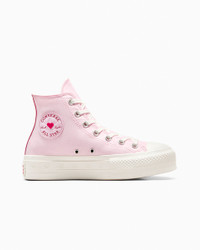 Take your V-Day gift game to the next level with romantic platform Chucks. XO, CHUCK TAYLOR Cupid's got nothing on you. Pretty pink platforms win your Valentine's heart *and* the group chat's approval. WHY YOU SHOULD BE DOWN - Durable canvas upper for that classic Chucks look and feel - OrthoLite cushioning helps provide optimal comfort - Rose-printed sockliners add a touch of romance - Heart-printed outsoles and a love-themed hangtag nod to Valentine's Day - Platform Height: 1.49 inches - SKU: A13652C