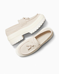 Finally, something you and your boss can agree on. CASUAL FRIDAY These chunky platform loafers pass the dress code and the vibe check. The ease of a slip-on, the elegance of office attire. Now that’s what we call a win-win. WHY YOU SHOULD BE DOWN - Durable suede upper for a luxe look and feel - OrthoLite cushioning helps provide optimal comfort - A chunky, lugged heel ups the height - Neutral colors mix and match with your whole wardrobe - Iconic All Star license plate - SKU: A15553C
