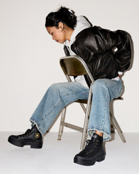 Lugged Chucks on the outside. Warm and fuzzy on the inside. COZY UP Temps are dropping, but these high tops bring the heat. They're designed to help keep the elements out and the warmth in-and do it all in minimalist, monochromatic style. WHY YOU SHOULD BE DOWN - Water-resistant, full-grain leather upper, with that rugged lugged Chucks look - OrthoLite cushioning helps provide optimal comfort - Cozy fleece lining helps lock in warmth - Chunky, lugged tread for expressive style - A monochromatic design brings a clean, minimalist vibe - SKU: A14542C