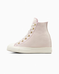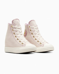Understated but never unnoticed—golden hits elevate trendy Chuck Taylor wedges. REFINED SHINE Drawing inspiration from luxury handbags, these clean and classic wedges take your style to the next level. Calm colors and subtle flashes of gold bring the perfect balance of laidback and luxe. WHY YOU SHOULD BE DOWN - Durable canvas upper with that classic Chucks look and feel - OrthoLite cushioning helps provide optimal comfort - An internal wedge ups the height - Golden eyelets add a luxe touch - Metallic Chuck Taylor ankle patch - SKU: A12763C