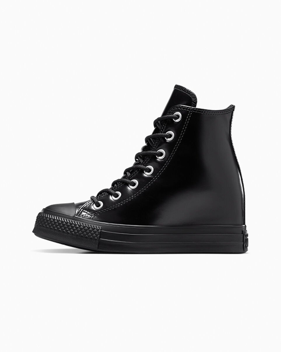 Welcome to the dark side. GOTH. For your all-black ‘fits. Sleek leather and a hidden wedge pair immaculately with your moodiest looks. WHY YOU SHOULD BE DOWN - Leather upper with that signature Chucks look and feel - OrthoLite cushioning helps provide optimal comfort - A hidden wedge ups the height. Heel height: 2.96 in. - Iconic Chuck Taylor ankle patch and All Star license plate - SKU: A12827C
