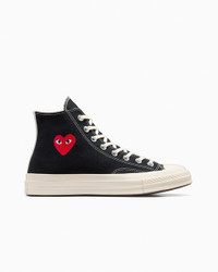 The fan-favorite collaboration brings back the OG single heart design from 2009 on the premium Chuck 70. CONVERSE X PLAY COMME DES GARCONS The one heart that started it all: Our iconic collaboration with PLAY Comme des Garcons returns with an ode to the OG Chucks that launched the partnership in 2009. On a minimalist Chuck 70, the throwback design features a single heart logo on the canvas while keeping classic Converse details untouched. It only takes one heart to make a splash. WHY YOU SHOULD BE DOWN - Limited-edition high top sneaker - Original Converse x PLAY Comme des Garcons design - Crafted in premium canvas for an elevated feel - Cobranded sockliner with OrthoLite insole cushioning for all-day comfort - Vintage license plate - SKU: A08801C