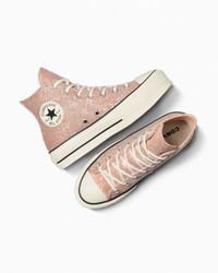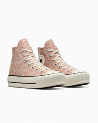 Nothing says "life of the party" like bold, sparkly platforms. GLITTER GALA Your go-to platforms get all dressed up to celebrate. Pops of cosmic color and shimmering glitter let your style shine. Which way to the dance floor? WHY YOU SHOULD BE DOWN - A glitter-coated upper brings party-ready vibes to any outfit - OrthoLite cushioning helps provide optimal comfort - Neutral colors pair with anything and everything - An elevated platform adds height - Iconic Chuck Taylor ankle patch and All Star license plate - SKU: A09422C