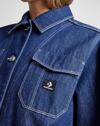 Layer up in this carpenter-inspired work coat. WORK IT Everybody needs a go-to jean jacket, and this one goes above and beyond. Layer it over your favorite top to complete your look. Plus, large pockets help you stay hands-free. WHY YOU SHOULD BE DOWN - Midweight denim is comfortable and durable - Standard fit for a relaxed, easy feel - Functional buttons allow for easy layering - Hand and chest pockets store small items on the go - Subtle Converse logo at left chest pocket - SKU: 10027976-A02