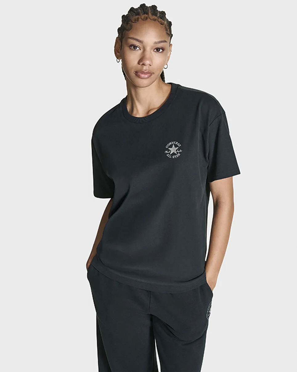 Casual in all the right ways, this oversized tee keeps things low-key but legendary. ALL STAR STAPLE Cut loose for comfort, this everyday tee is a must-have. Easy-to-pair colors and All Star embroidery keep this one in heavy rotation. WHY YOU SHOULD BE DOWN - Cotton fabric feels soft against your skin - Oversized fit has a baggy, spacious feel - Classic crew neck coverage - Embroidered All Star logo at the left chest - 100% Cotton - SKU: CVW5T829-BLK