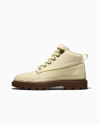 Tyler, The Creator pays tribute to a ‘90s Converse boot—blending the original’s stylish durability with signature cues from the GOLF le FLEUR* palette. CONVERSE 1908: ARCHIVES BY TYLER, THE CREATOR Introducing the Converse 1908 Bronco Boot: Lugged Chucks from the past—adapted for today. With his third drop from Converse 1908, Tyler, the Creator pays tribute to a ‘90s Converse boot that blended classic Chuck DNA with the rugged durability but stylish look of boots from that era. Tyler puts a GOLF le FLEUR* spin on it with premium canvas and minimalist tones from his signature palette. Rooted in 1908—the year Converse was founded—this collection celebrates the timeless Converse legacy of fearless creativity, innovation and self-expression. WHY YOU SHOULD BE DOWN - Limited-edition archival Converse boot redesigned by Tyler, The Creator with a premium canvas yellow upper - Archival rubber toe overlay - Solid color round woven lace and two-tone round woven lace option - Le Fleur* branded lace jewel and branding on sockliner - Welted lug bottom brown outsole - SKU: A19143C