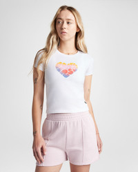 Wear your love for Converse on your favorite tee. HEART TO HEART Meet your new most-loved t-shirt. Available in neutrals and trendy colors, this comfy tee leads with love. WHY YOU SHOULD BE DOWN - Cotton jersey fabric feels soft against your skin - Standard fit for a relaxed, easy feel - Classic crew neck coverage - Colorful heart-shaped logo graphics show your love for Converse - 62% Cotton, 33% Polyester, 5% Spandex (Elastane) - SKU: 10028331-A03