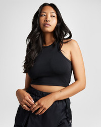 That goes-with-everything, ready-for-anything tank. BASICS MADE BETTER A trendy cut, flattering fit, and easy-to-pair neutrals. What's not to love? WHY YOU SHOULD BE DOWN - Stretchy ribbed knit cotton jersey is soft and comfortable - Slightly cropped and slim fit for easygoing style - Classic crew neck coverage - Neutral colors pair easily with your whole wardrobe - 62% Cotton, 33% Polyester, 5% Spandex (Elastane) - SKU: 10027947-A02