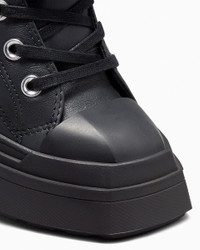 Martine Ali pairs her modular aesthetic with classic Converse style, creating a platform Chuck 70 designed for self-expression. CONVERSE x MARTINE ALI The Chuck 70 De Luxe Wedge, our first collaboration with Brooklyn designer Martine Ali, transforms the fan-favorite icon into a modular statement piece. The edgy, leather platform design features removable gaiter that let you go from fashion-forward high top to bold knee-high style in an instant. The versatile construction is paired with contrast stitching, lace closures and hardware snap details that give it an elevated, subversive aesthetic. Dial up the runway vibes as you see fit. WHY YOU SHOULD BE DOWN - Limited-edition modular style designed by Martine Ali with a leather upper - Hardware snap details on the upper pair style with functional modularity - Removable knee-high gaiter with zipper entry, lace closure, contrast stitch details and hardware snaps - Leather tonal debossed ankle patch and custom tone-on-tone Martine Ali branding - Spare set of laces - SKU: A08650C