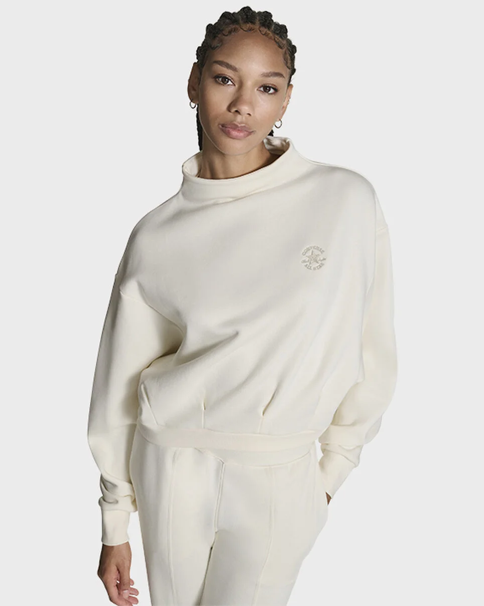 This soft fleece sweatshirt is effortlessly cozy and unexpectedly polished. THE BASICS, MADE BETTER Your favorite pullover fleece gets a sophisticated twist with a chic mock-neck collar and subtle embroidery. WHY YOU SHOULD BE DOWN - Fleece fabric feels soft against your skin - Oversized fit has a baggy, spacious feel - Mock neck for a touch of elegance - Embroidered All Star logo at the left chest - 80% Cotton, 20% Polyester - SKU: CVW5H819-EG7