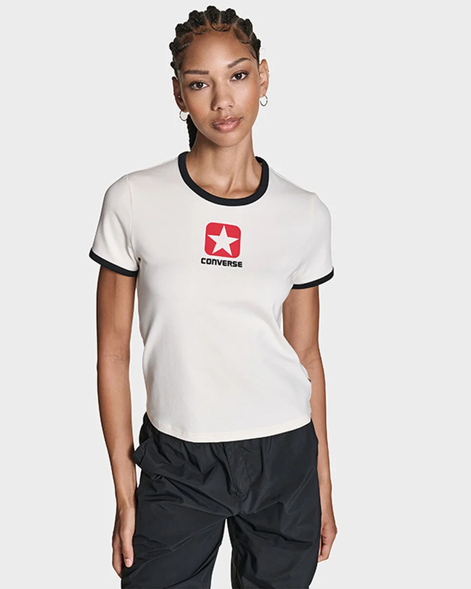 A throwback tee with contrast trim. THE CLASSIC COMEBACK This throwback tee brings ’90s vibes with its contrast trim, vintage Converse logo, and slim fit. The soft, cotton-blend fabric has stretch for comfort, so you can kick back or throw it on and go. WHY YOU SHOULD BE DOWN - Stretch cotton-blend fabric that moves with you - Slim fit for a flattering look - Classic crew-neck coverage - Vintage Converse graphic adds legacy detail - 63% Cotton, 32% Polyester, 5% Spandex - SKU: CVW5T242-EG7