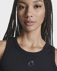 A stretchy tank with a vintage Converse One Star logo. STAR STUDDED This tank brings the fit and the attitude featuring a vintage Converse One Star logo and a stretchy fabric that keeps its shape, even when you live in it. WHY YOU SHOULD BE DOWN - Stretch cotton blend fabric that moves with you - Embroidered One Star logo adds legacy detail - 57% Cotton, 38% Polyester, 5% Spandex - SKU: CVW5K835-BLK
