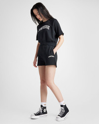 Comfy. Casual. Classic. ALL STAR ESSENTIALS Front seams and arched logo graphics elevate your favorite shorts, just in time for warm weather fun. Mix and match 'em with your favorite tees and tanks for a trendy, retro-inspired 'fit. WHY YOU SHOULD BE DOWN - French Terry fabric feels soft against your skin - Standard fit for a relaxed, easy feel - A stretchy, encased elastic waistband forms to fit your body - Pairs perfectly with the Cropped Raglan Crew - 78% Cotton, 22% Polyester - SKU: 10027784-A02