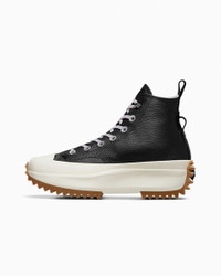 Rev up your cold-weather rotation with the Run Star Hike in classic black leather. ELEVATED REBELLION Ready for cold days and nights, classic black leather takes on the Run Star Hike. The iconic sawtooth treads helps provide traction, while lightweight cushioning proves loyalty to your comfort is their fiercest trait. WHY YOU SHOULD BE DOWN - Leather upper gives you durability with a luxe twist - EVA cushioning helps provide lightweight comfort without the bulk - Platform outsole amps up height and style - Heel pull helps offer easy on and off - An exaggerated, saw-tooth outsole gives you a bold style and helps provide traction - SKU: A12897C