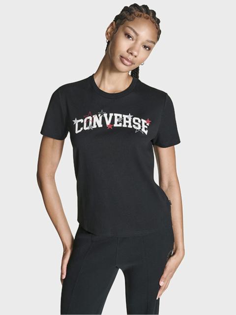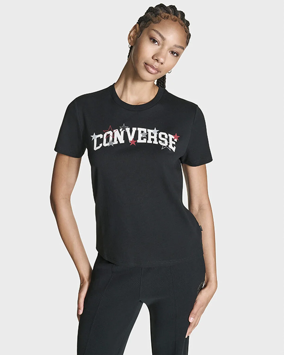 An essential tee with instant star power. STARRY EYED Call it a basic cotton tee with main character energy. Whether you’re out and about or laying low, this one’s ready to rise to the occasion. WHY YOU SHOULD BE DOWN - Cotton fabric feels soft against the skin - Standard fit provides a relaxed, easy feel - Converse logo with star graphics at the center chest - 100% cotton - SKU: CVW5T026-BLK