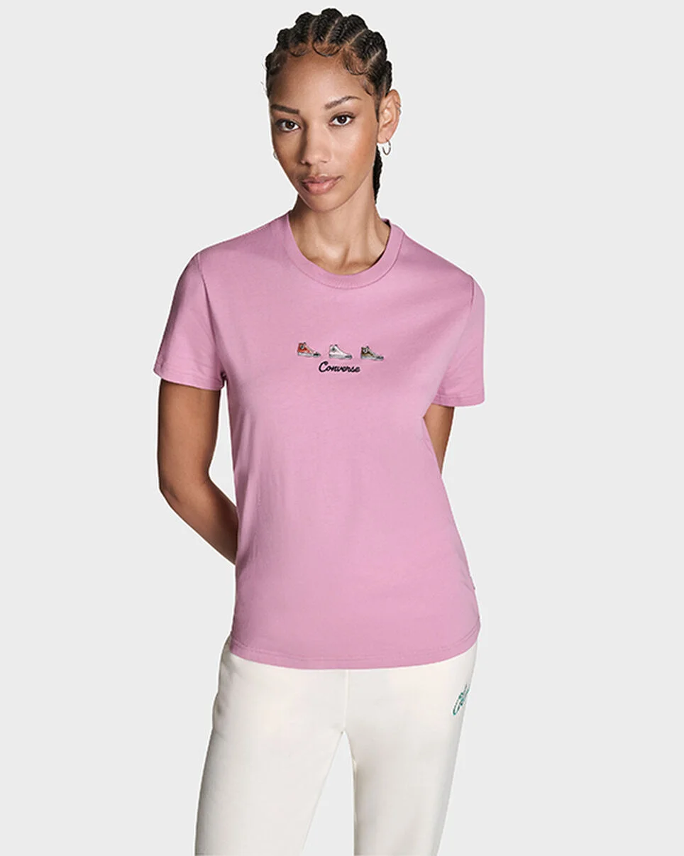 An ode to the All Star you know and love. 3 CHUCKS ARE BETTER THAN ONE Made for Chucks fans everywhere, this cotton graphic T-shirt features the iconic All Star in three cute colorways. WHY YOU SHOULD BE DOWN - Classic jersey fabric provides everyday comfort - Standard fit for an easygoing look - Classic crew-neck coverage - Embroidered Chuck Taylor All Star graphic adds iconic style - 100% Cotton - SKU: CVW5T753-M0Q