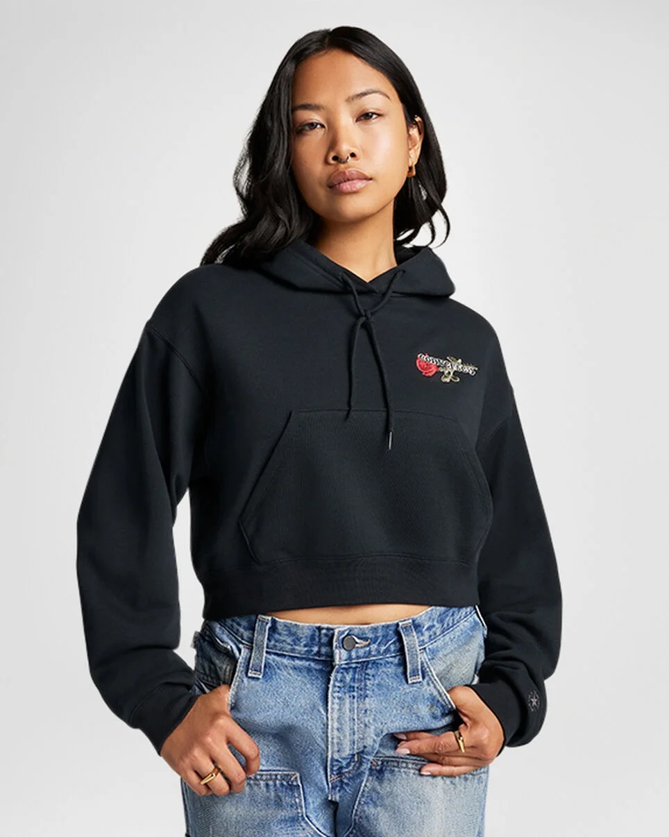Pretty, but tough—just like you. FRESH AS A ROSE Don't let the thorns fool you, this hoodie is super soft and easy to love. WHY YOU SHOULD BE DOWN - French Terry fabric feels soft against your skin - Standard fit for a relaxed, easy feel - Adjustable hood for personalized coverage - Rose and thorns logo graphic adds a touch of romance - 72% COTTON, 20% POLYESTER (RECYCLED), 8% COTTON (ORGANIC) - SKU: 10028309-A02
